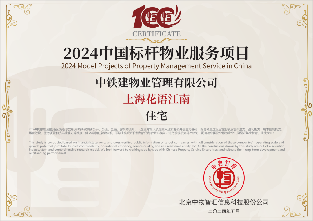其中,中铁建物业管理有限公司荣获“2024中国物业服务综合实力百强企业 第14名”“2024中国物业国有企业50强”及子榜“2024中国物业服务企业华北30强”“2024中国标杆物业服务项目”奖项。