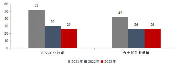 图:2021年至2023年1-2月百亿、五十亿房企数量