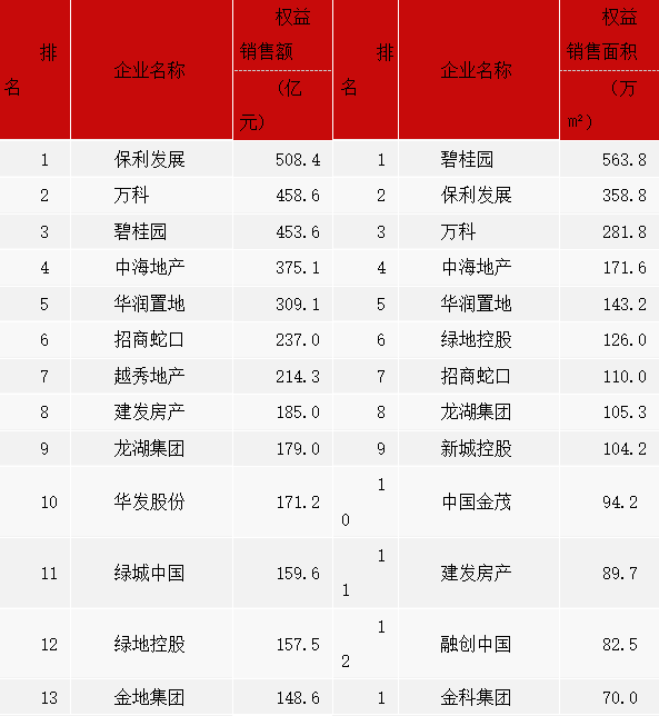 2023年1-2月中国房地产企业权益销售业绩TOP100。