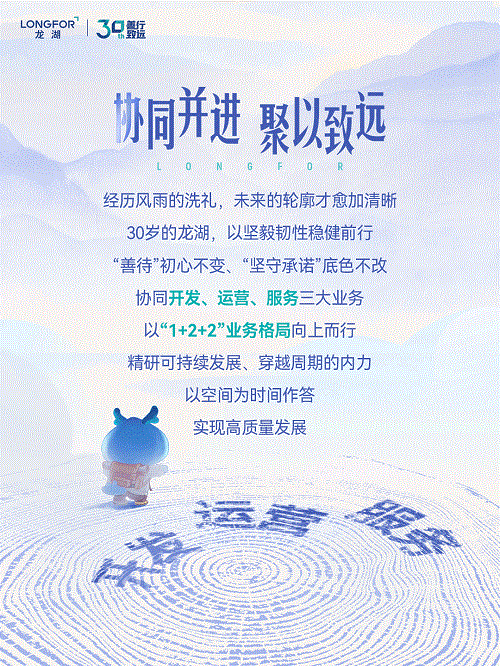 过去的三十年,龙湖以空间起笔,于时光里写下自己的故事。创业三十年来,龙湖始终保持“善待你一生”的初心,与“客户至上”、“坚守承诺”的底色。